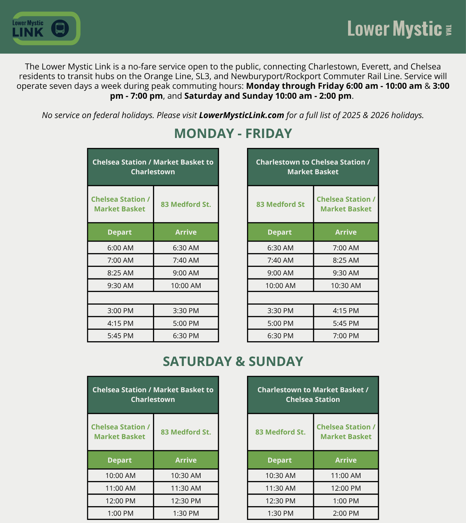 There will be no shuttle service on federal holidays. See the schedule for 2025 and 2026 here.